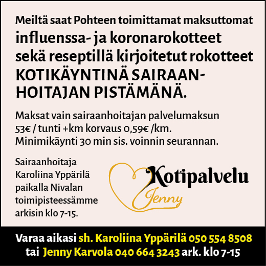 Kotipalvelu Jenny tarjoaa kotihoitoa Pohteen alueella Pohteen maksamana sekä yksityisille itsemaksaen.
